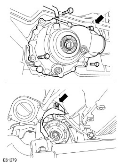 NOTE: The differential case is rotated by 90 degrees, and removed through the sub-frame with the halfshaft oil seal uppermost.
