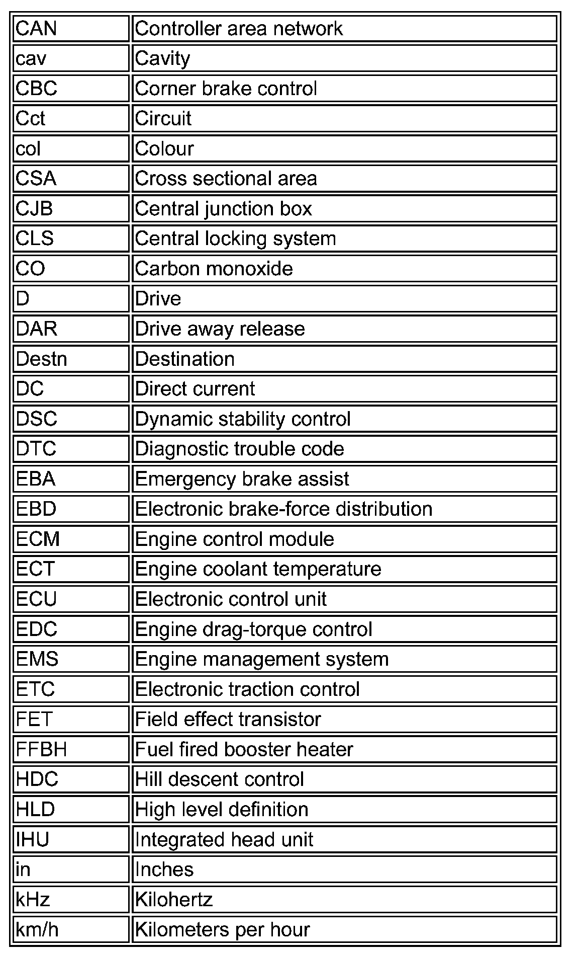 5. Cct: Identifies the model or option which uses the wire. 'ALL' means applicable to all models in the range fitted with the feature or system in question. In instances where different models, features or systems require different colour wires to be fitted in a cavity, each instance of the cavity is included in the pin-out table.