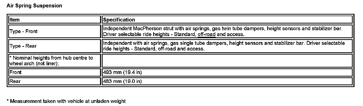 * Measurement taken with vehicle at unladen weight
