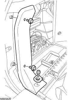8. Remove the turn fastener and trim clip securing the LH and RH front loadspace trim panels.