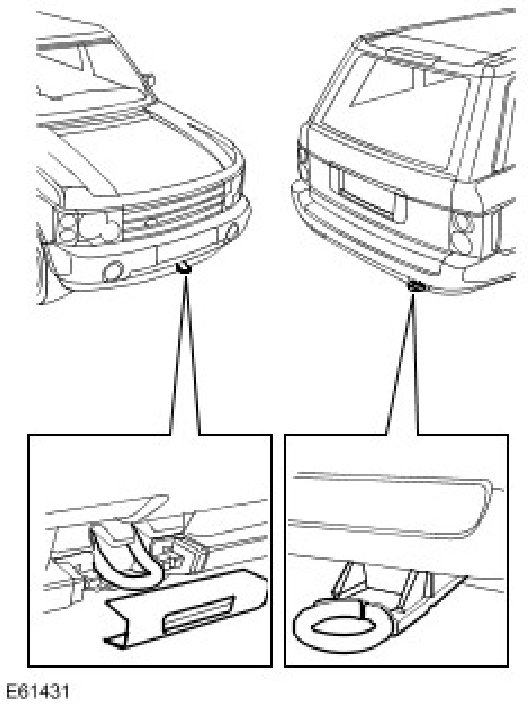 - The rear towing/lashing eye should only be used for towing another vehicle or for recovery purposes to enable this vehicle to be positioned in order that the front towing eye may be used for recovery/towing.