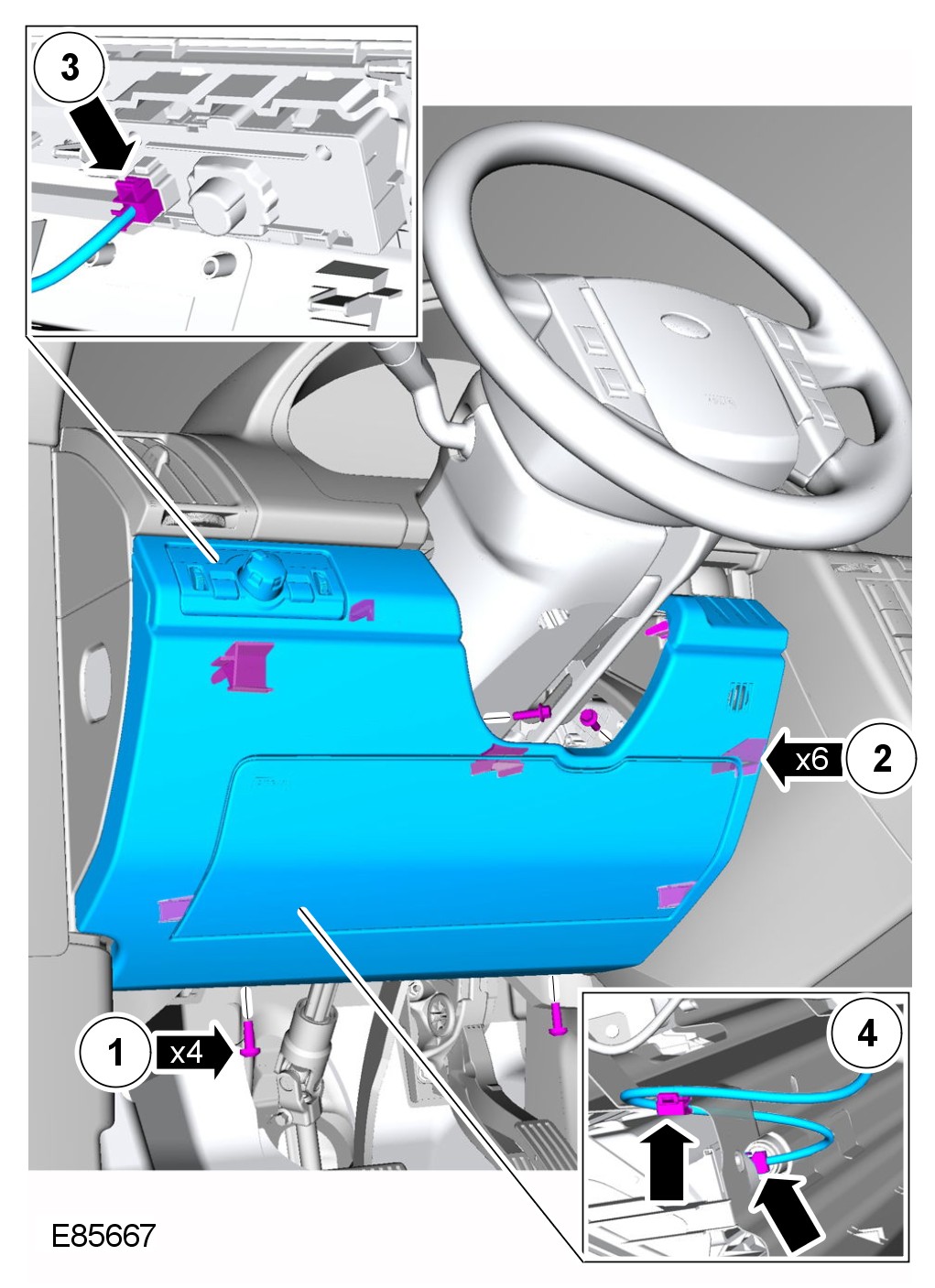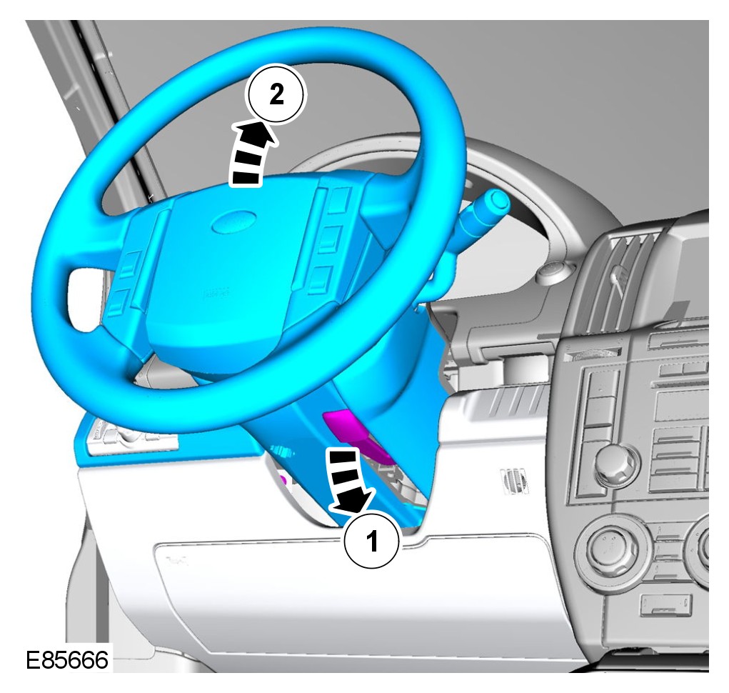 2 Release the steering column lever and raise the column for access.