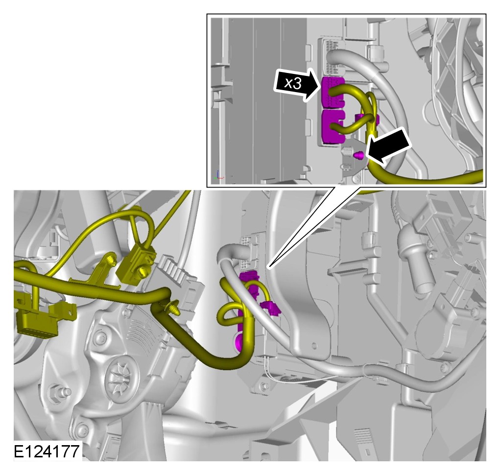 24 Connect the electrical connectors to the passenger side lower A-pillar.
