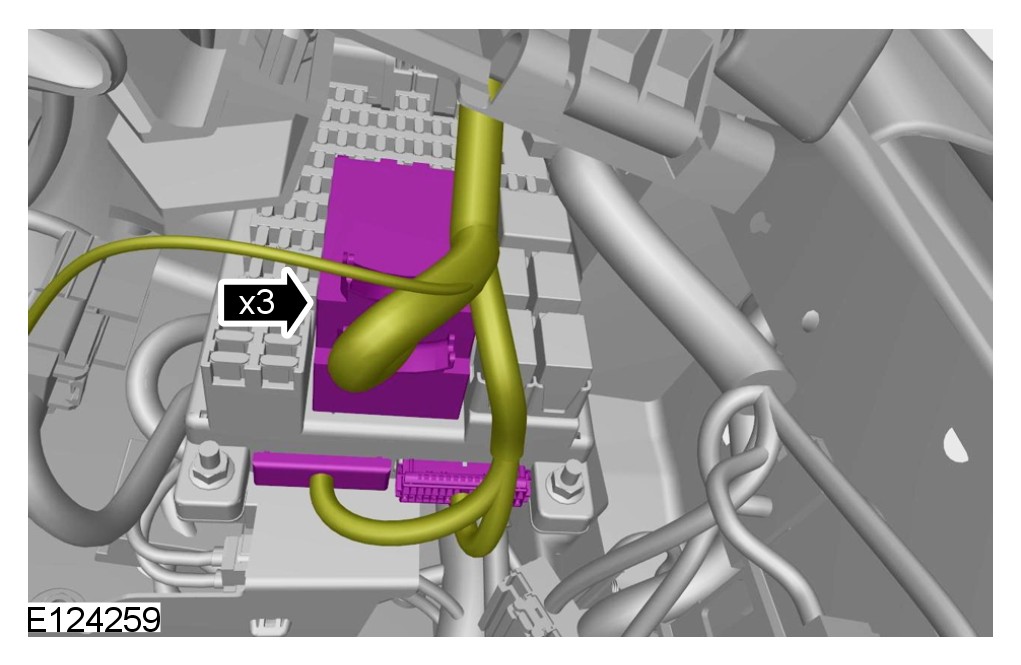 13 Disconnect the central junction box (CJB) three electrical connectors.