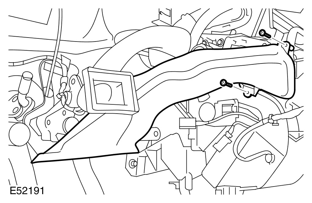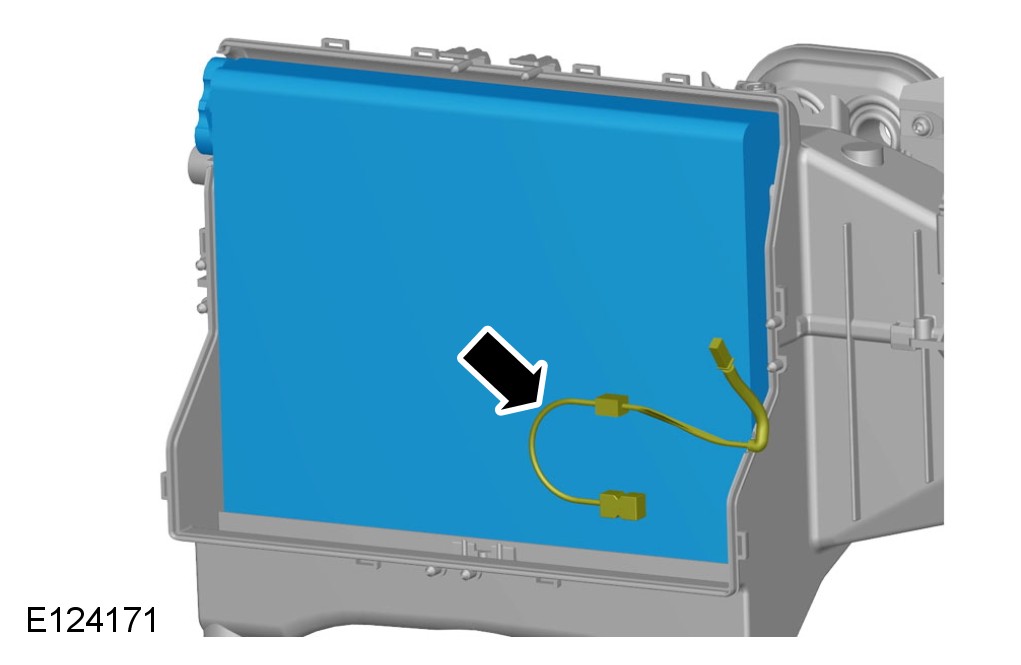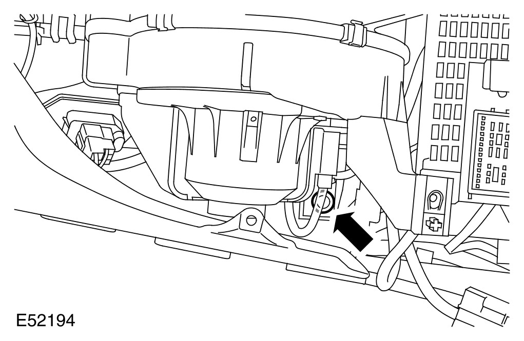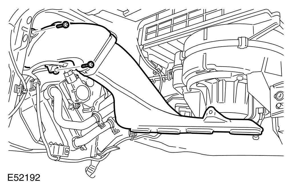 9 Driver side: Install the heater housing to bulkhead Torx bolt and tighten to 6 Nm (4 lb.ft).