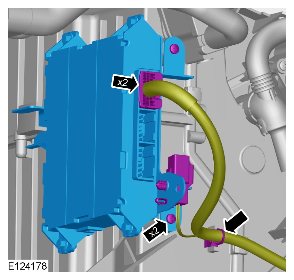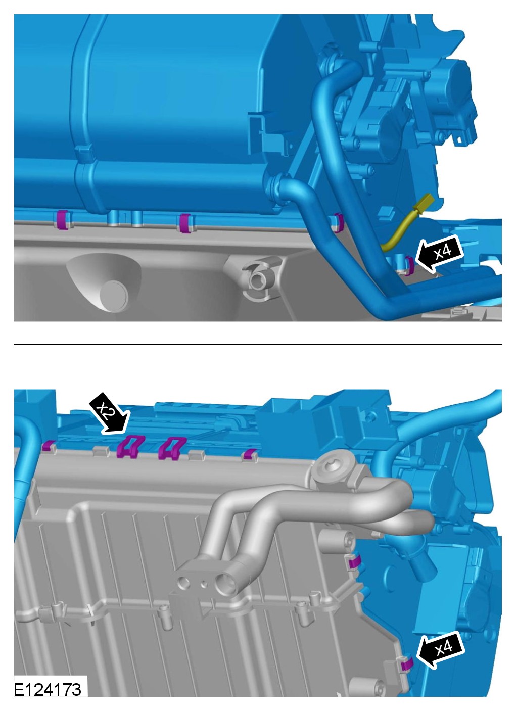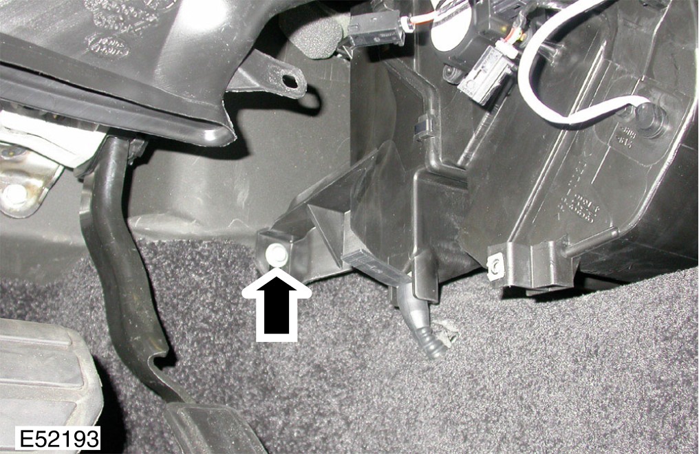 8 Passenger side: Install the heater housing to bulkhead Torx bolt and tighten to 6 Nm (4 lb.ft).