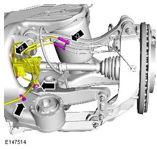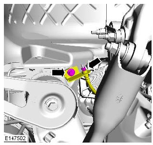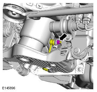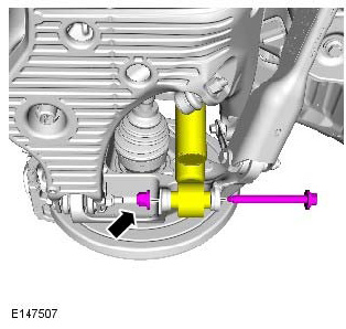 - Discard the lower control arm front retaining nut and bolt.
