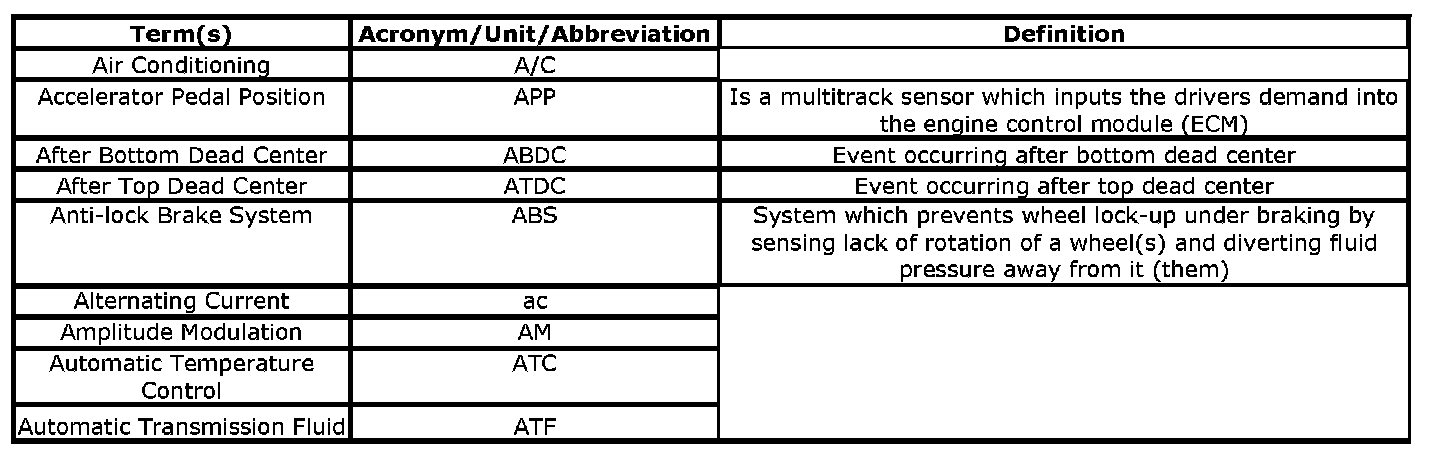 This glossary of terms is intended to cover mainly emissions-related (to SAE J 1930) terminology, and other abbreviations that may be used.
