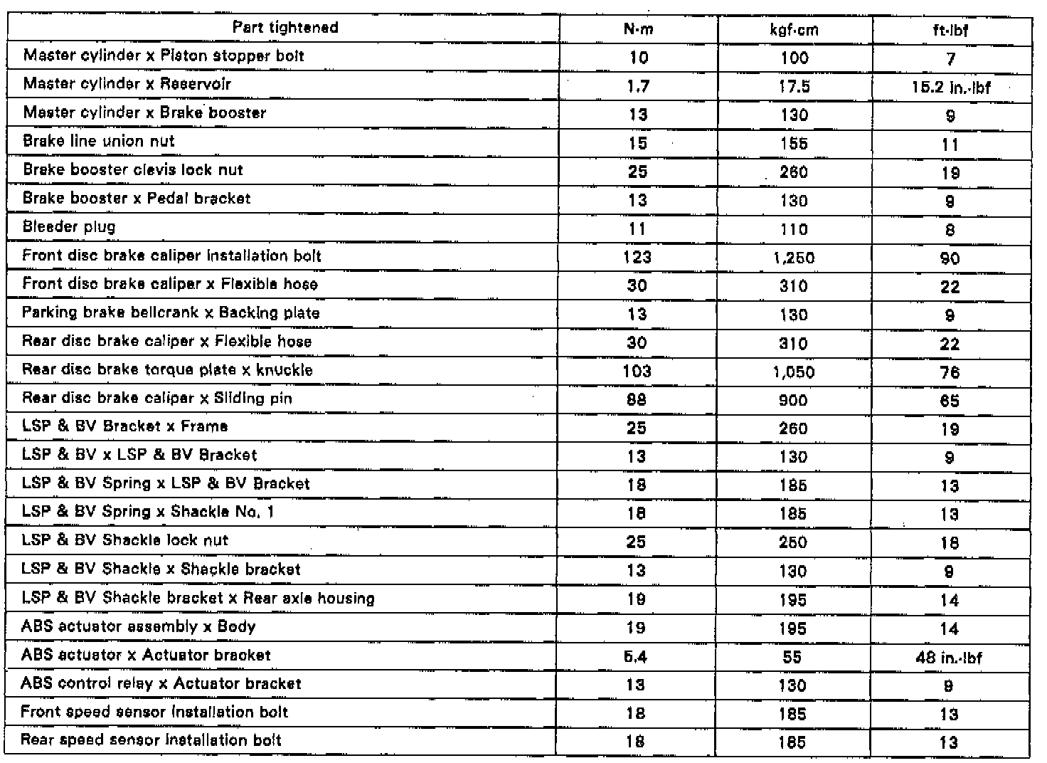 Torque Specifications