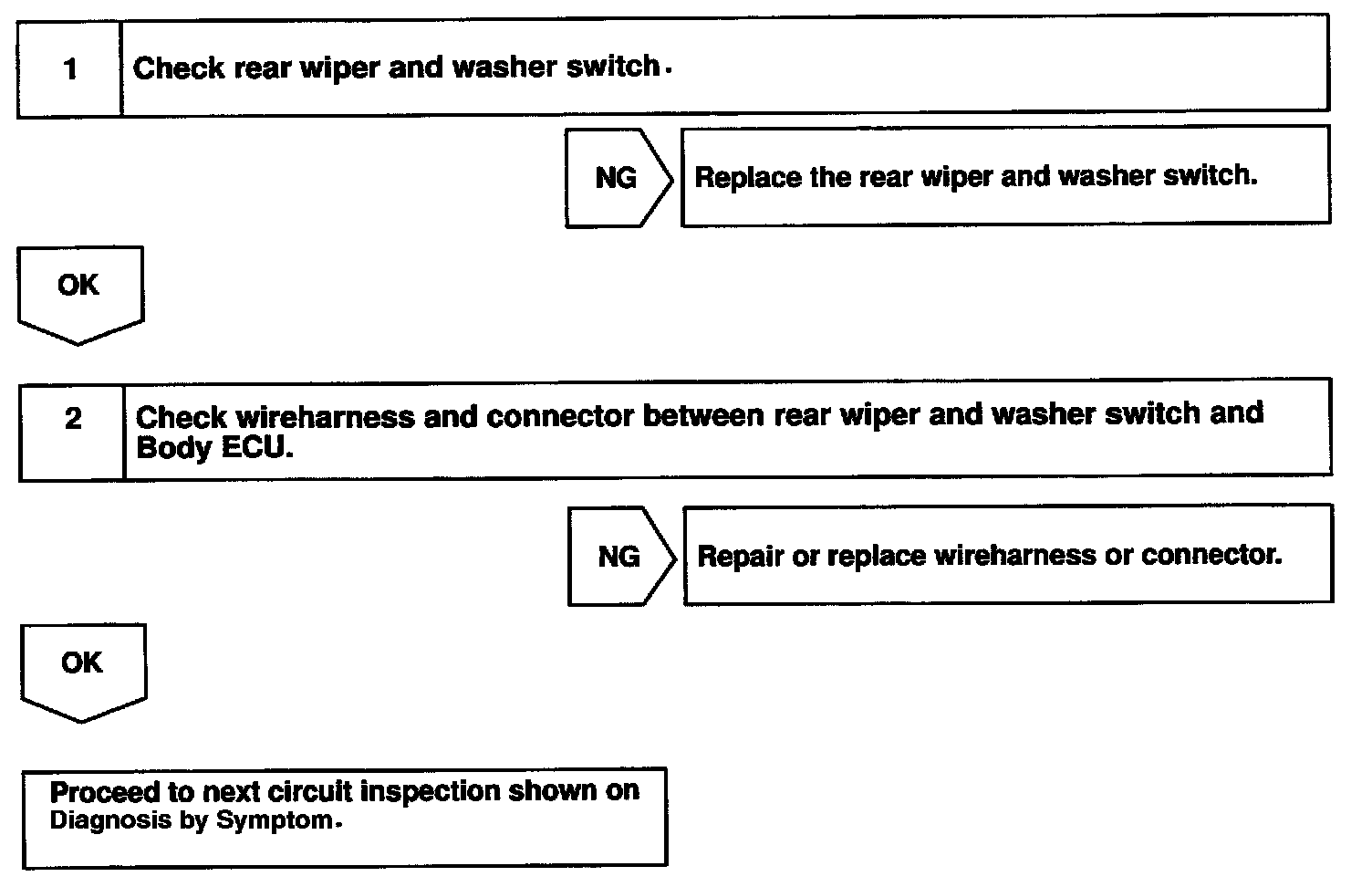 Body ECU judges the switch position with the terminal voltage of the wiper and washer switch and runs the wiper motor.