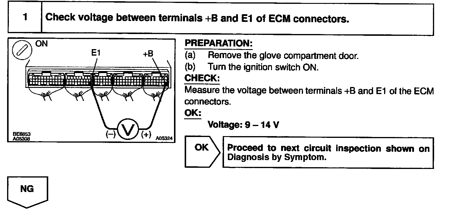 This signal causes current to flow to the coil, closing the contacts of the EFI main relay and supplying power to terminal +B of the ECM.