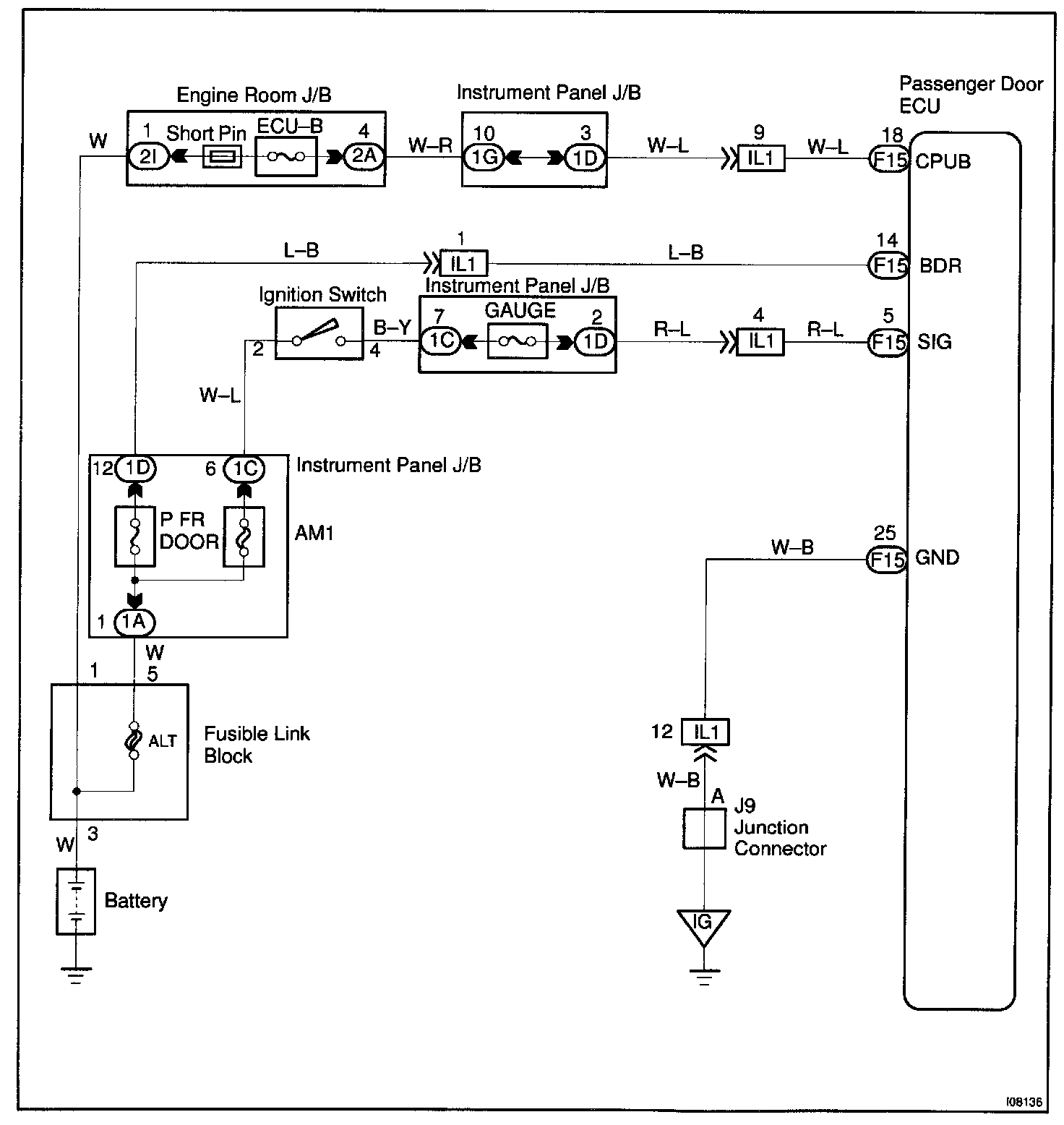 This circuit provides power to operate the passenger door ECU.