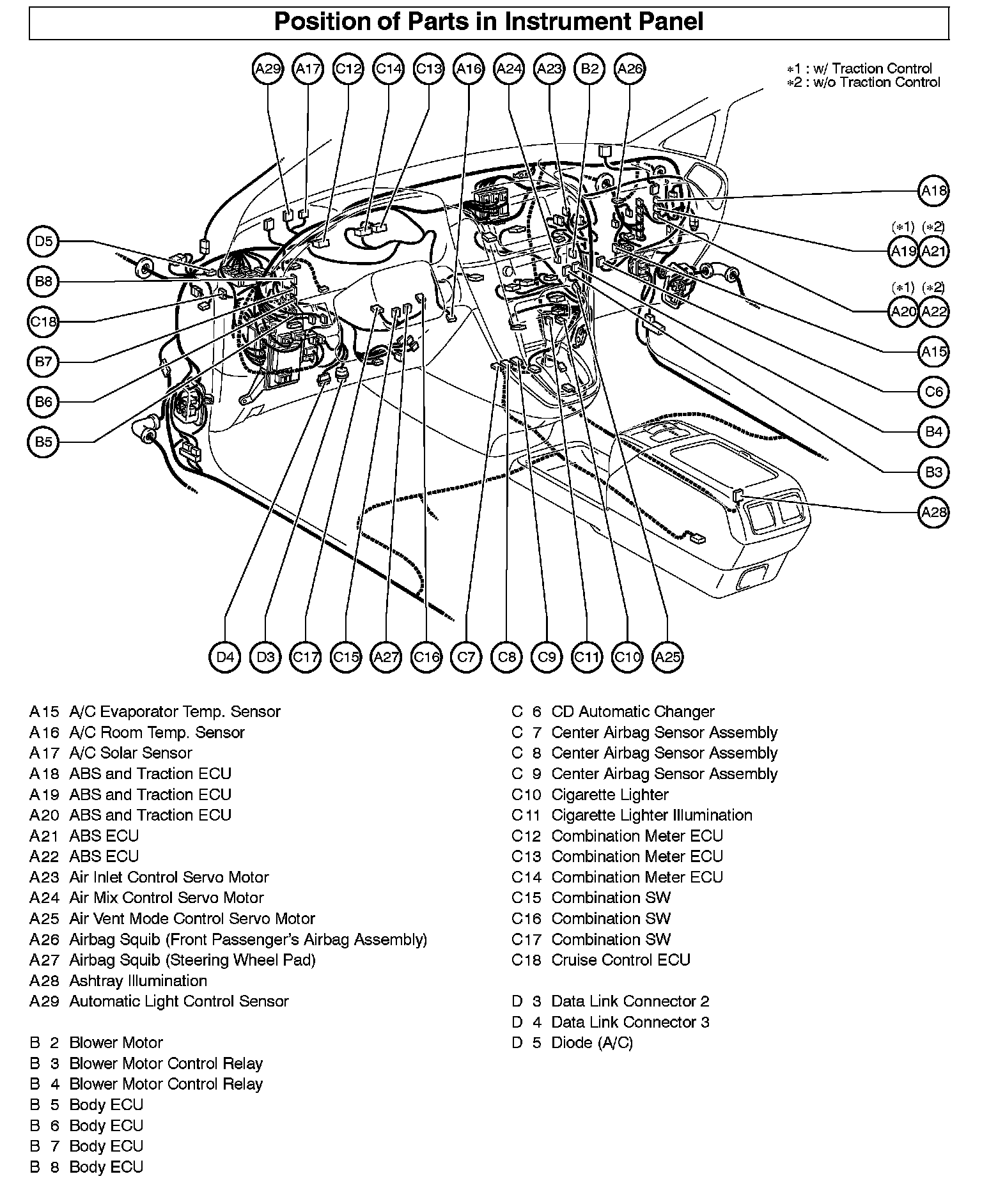 Position Of Parts In instrument Panel (With And Without Traction Control):