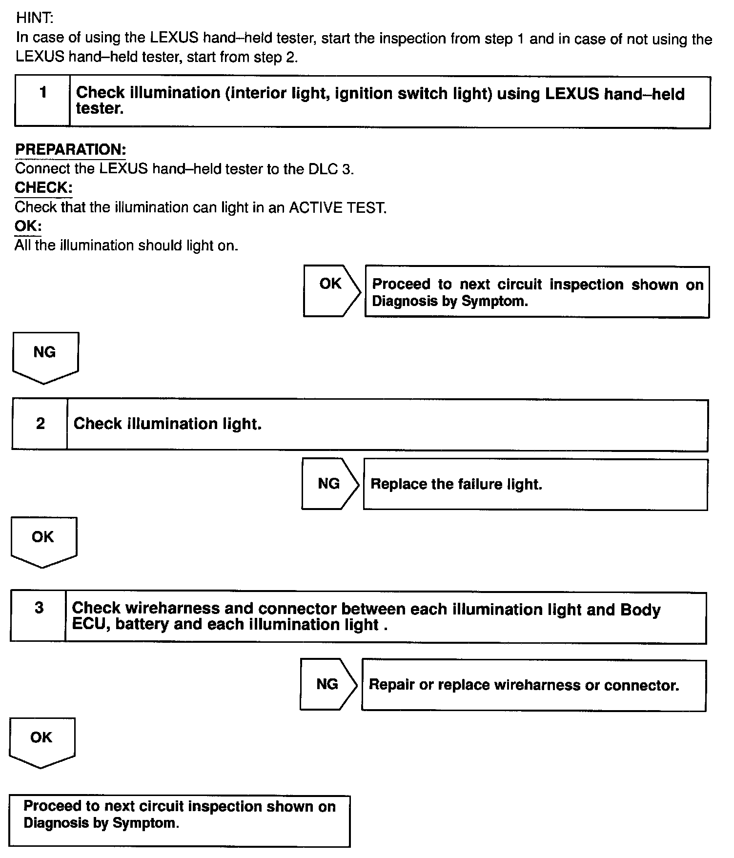 Receiving the courtesy signal from either of the door ECU, the Body ECU will make the front interior light and ignition light, come on.