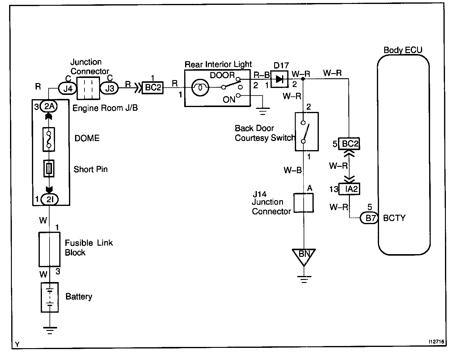 Rear Interior Light and Back Door Courtesy Switch Circuit