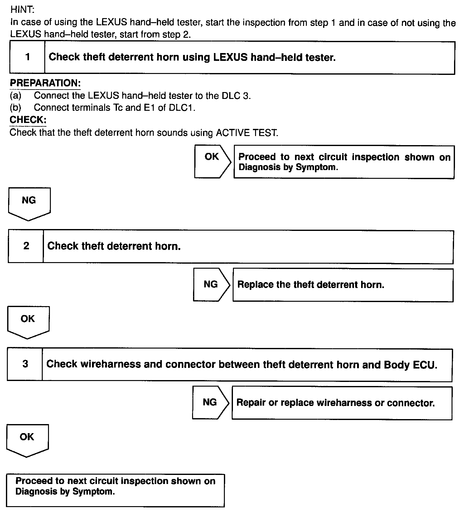 During warning of the theft deterrent system, the Body ECU activates the theft deterrent horn.