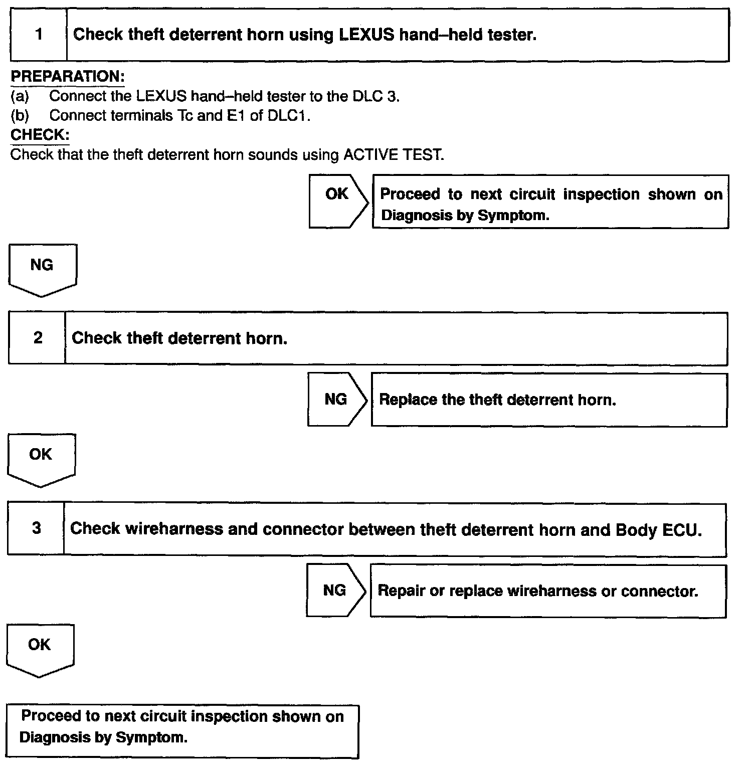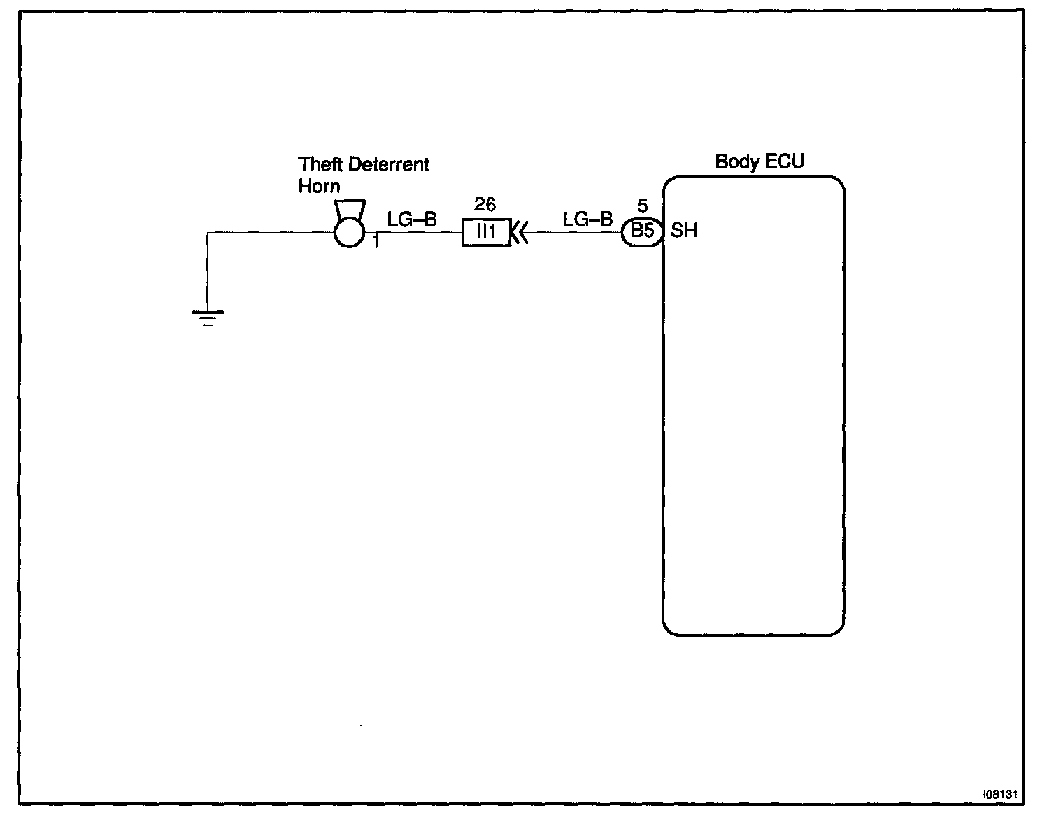 CIRCUIT DESCRIPTIONDuring warning of the theft deterrent system, the Body ECU activates the theft deterrent horn.