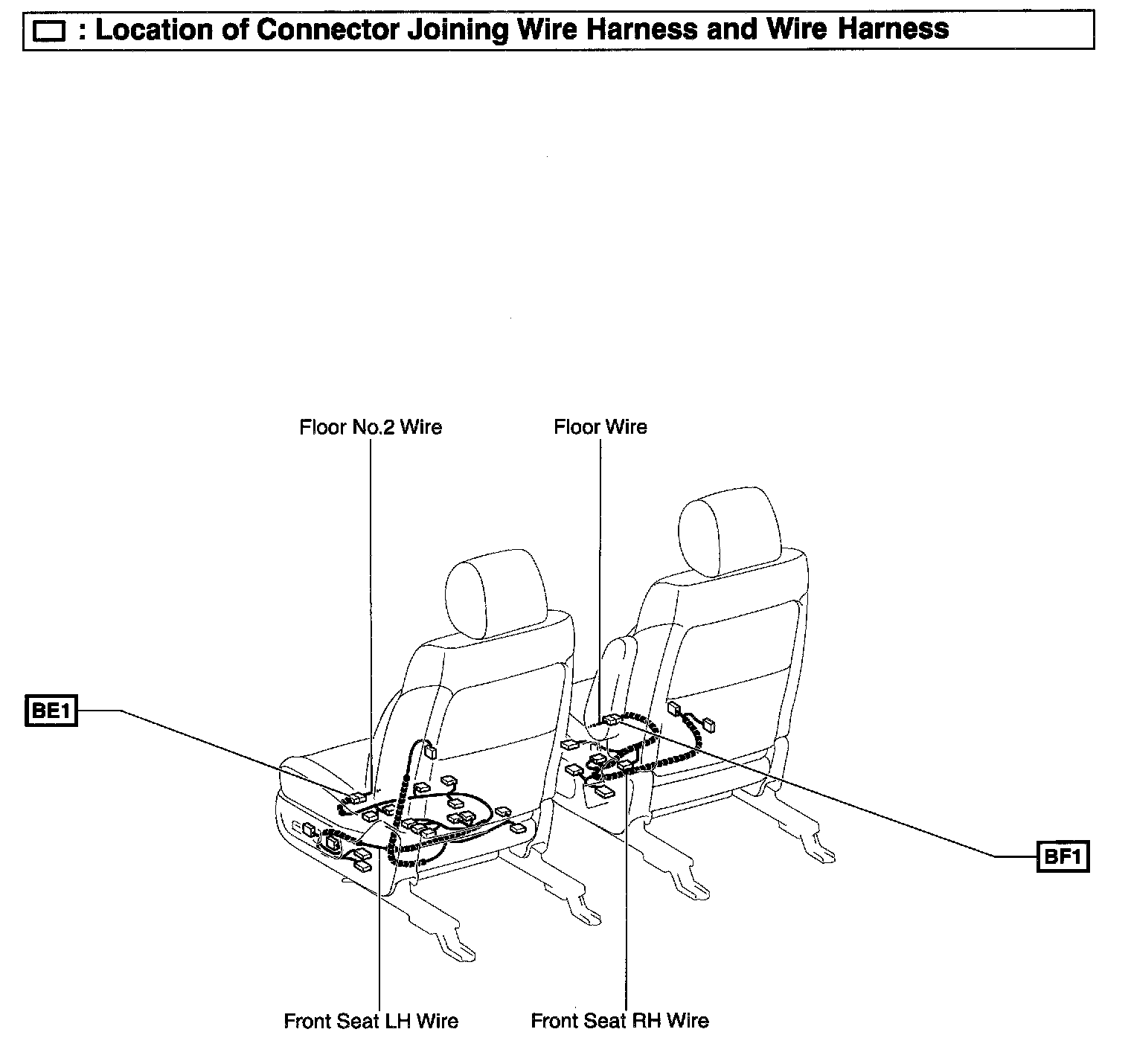 BE1 Floor No.2 Wire and Front Seat LH Wire (Under the Driver's Seat)