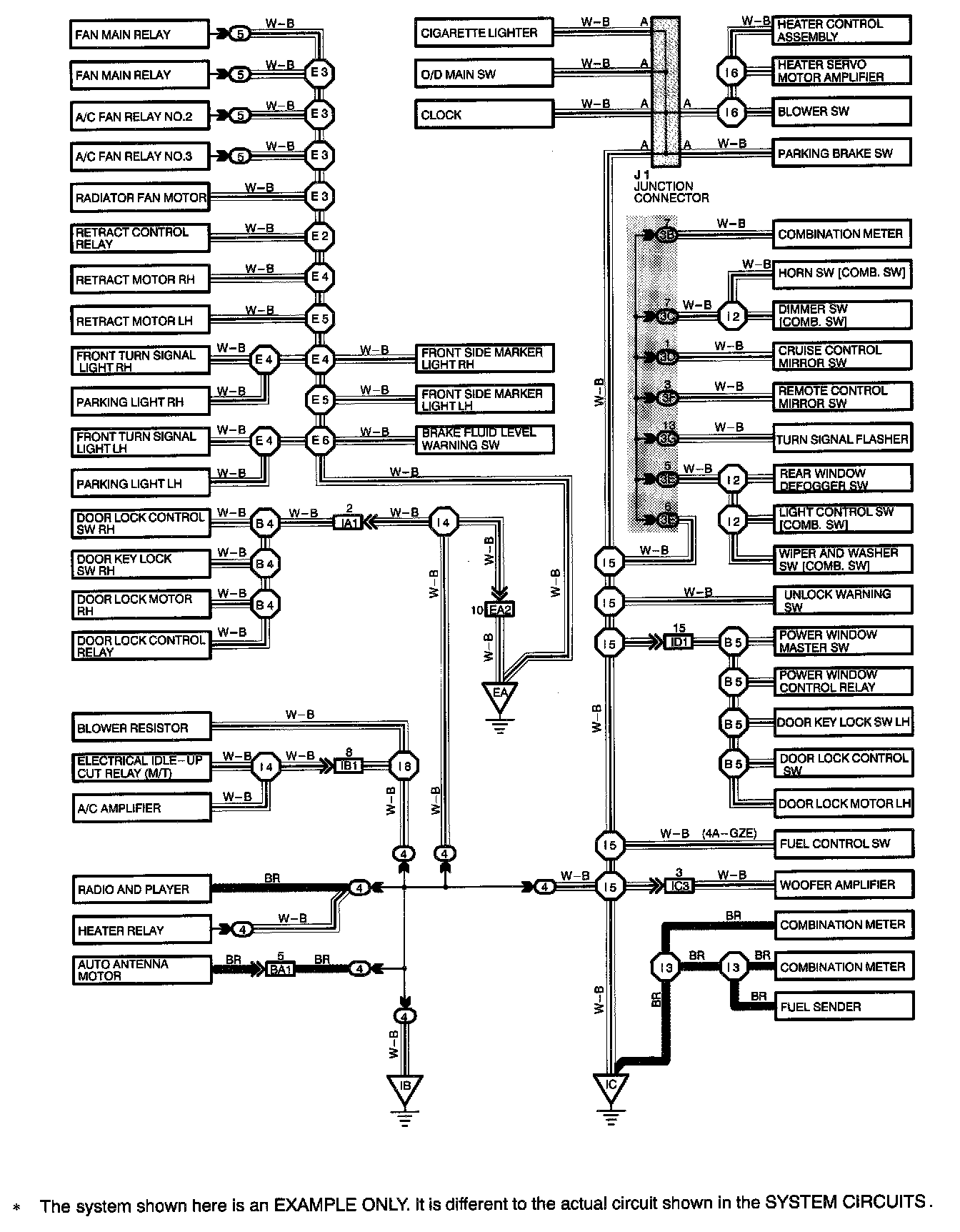 HOW TO READ GROUND POINTSThe ground points circuit diagram shows the connections from all major parts to the respective ground points. When troubleshooting a faulty ground point, checking the system circuits which use a common ground may help you identify the problem ground quickly. The relationship between ground points (EA, IB and IC shown) can also be checked this way.