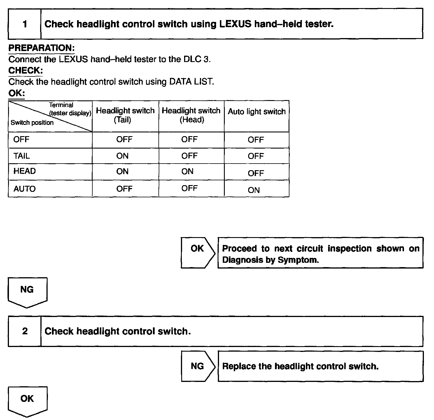 In case of using the LEXUS hand-held tester, Stan the inspection from step 1 and in case of not using the LEXUS hand-held tester, start from step 2.