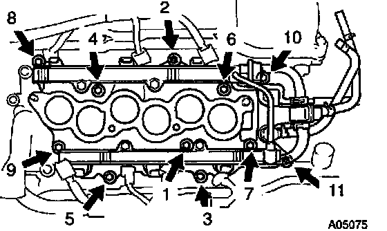 LH Cylinder Head Camshaft Bearing Cap Removal Sequence: