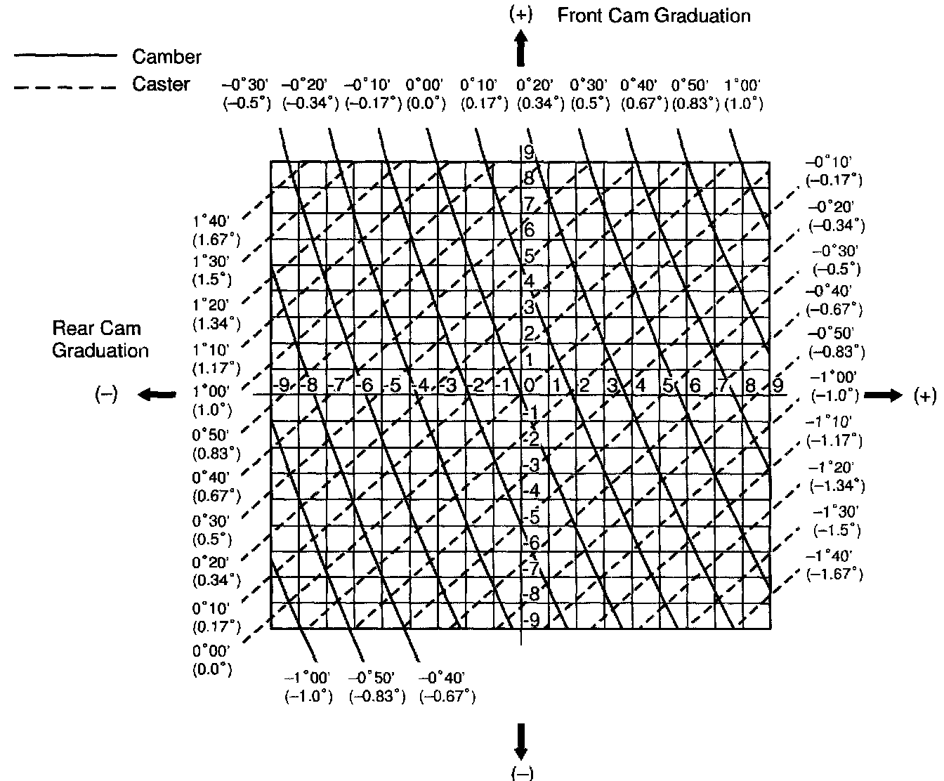 b. Adjust the camber and caster by front and/or rear adjusting cams.