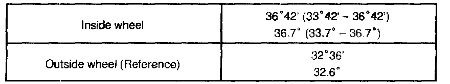 If the steering axis inclination is not within the specification, after the camber and caster have been correctly adjusted, recheck the steering knuckle front wheel for bearing or looseness.