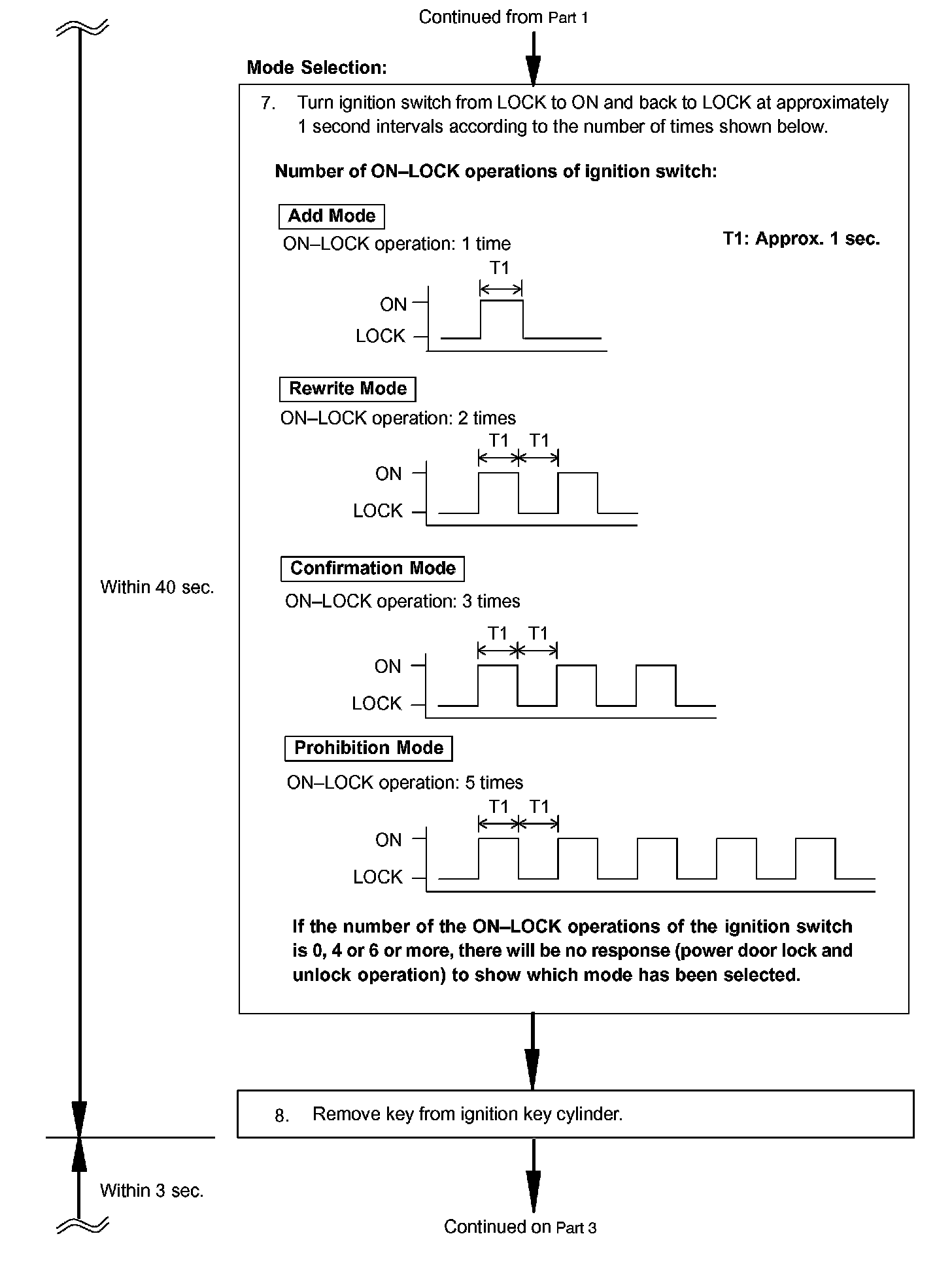 - The prohibition mode is used to erase all the registered codes and disables the wireless door lock function. This mode is used when the transmitter is lost.