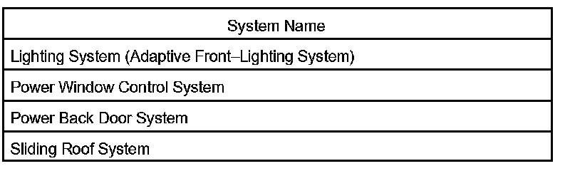When disconnecting the negative (-) battery terminal, initialize the systems shown in the table after the terminal is reconnected.