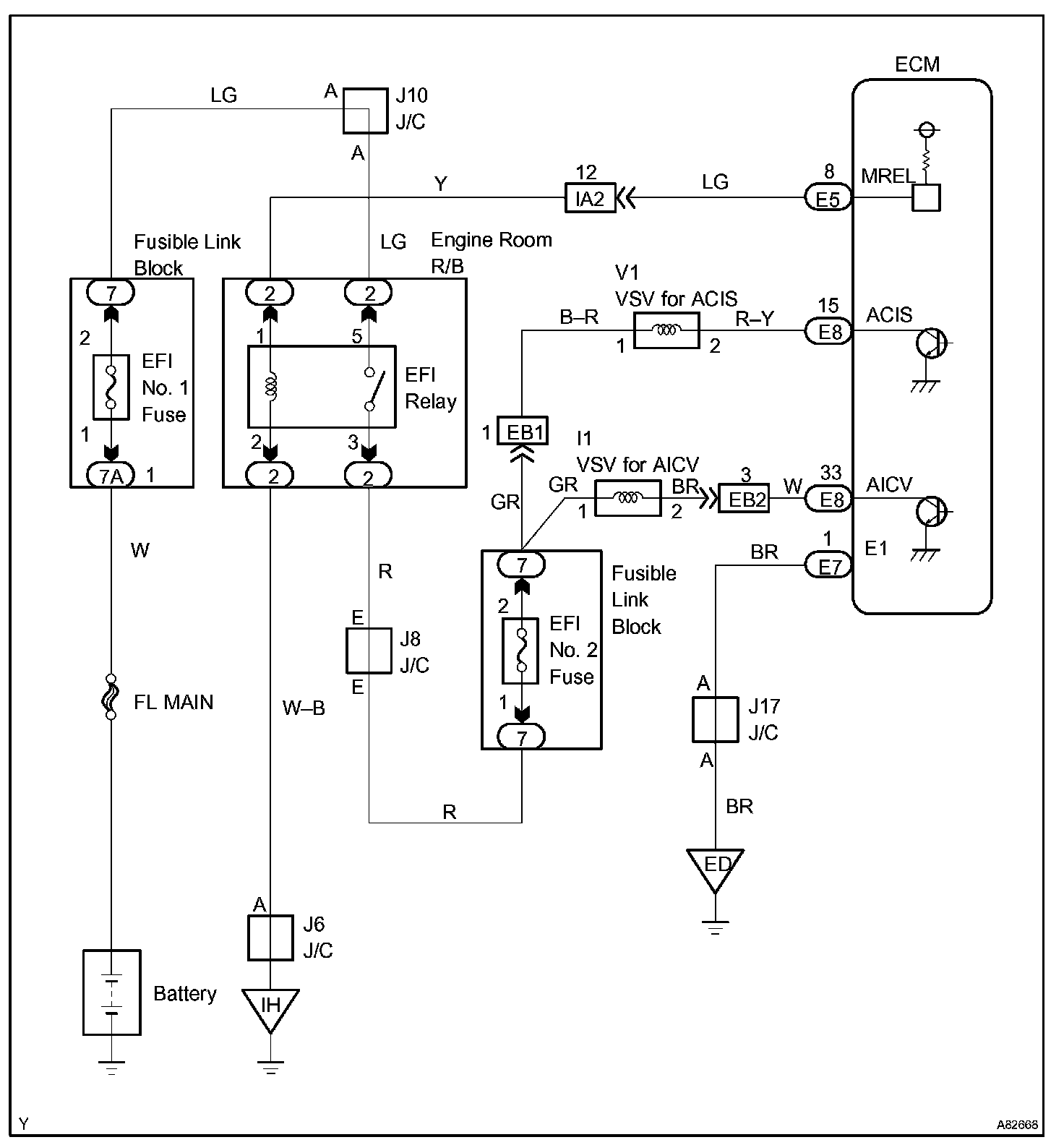 The ECM opens and closes the Intake Air Control Valve in response to engine speed (RPM/NE).