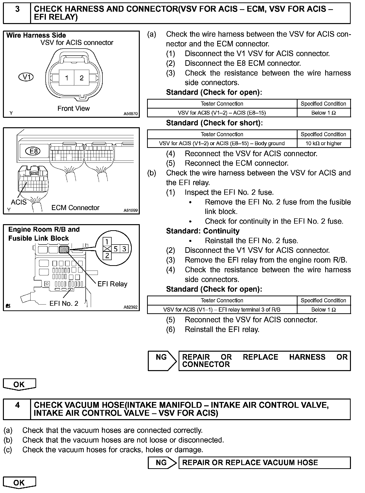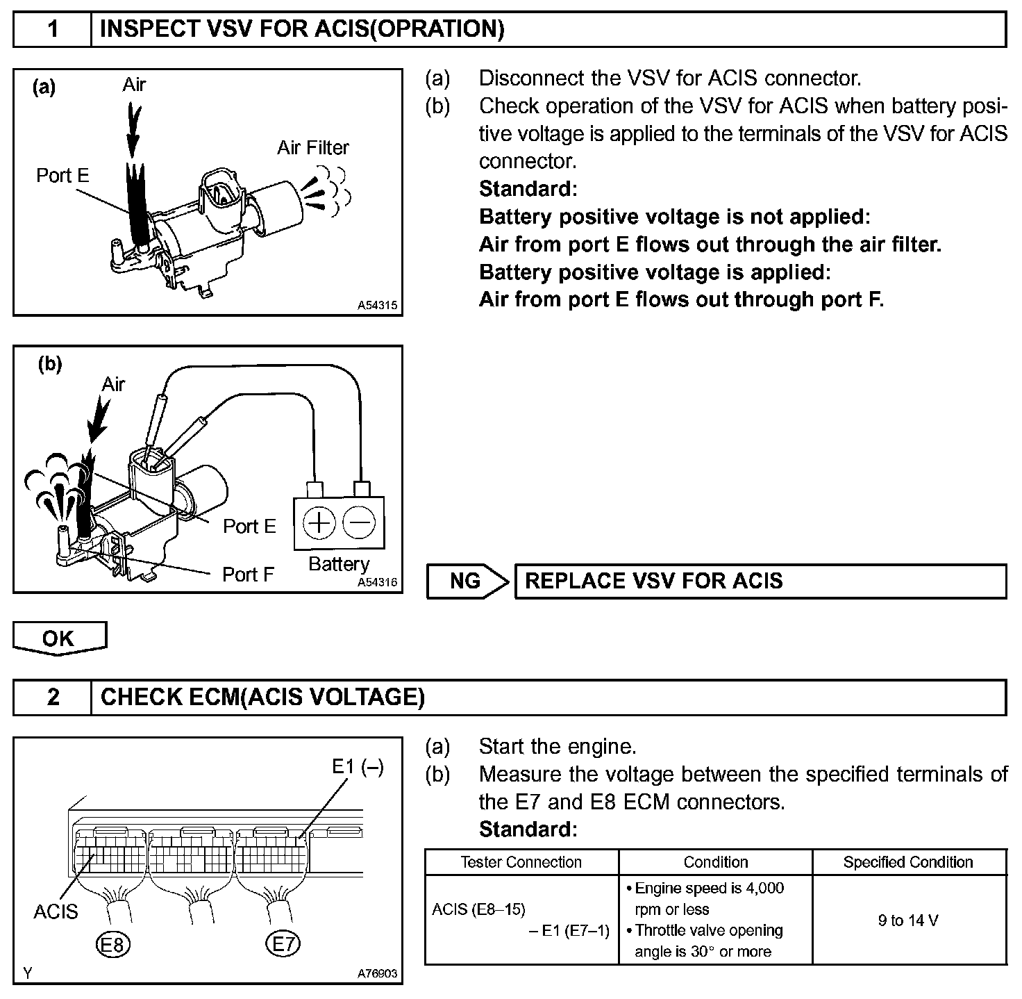 When the engine speed is 4,000 rpm or less and the throttle valve opening angle is 30 ° or more, the ECM turns the VSV ON or OFF to operate the intake Air Control Valve.