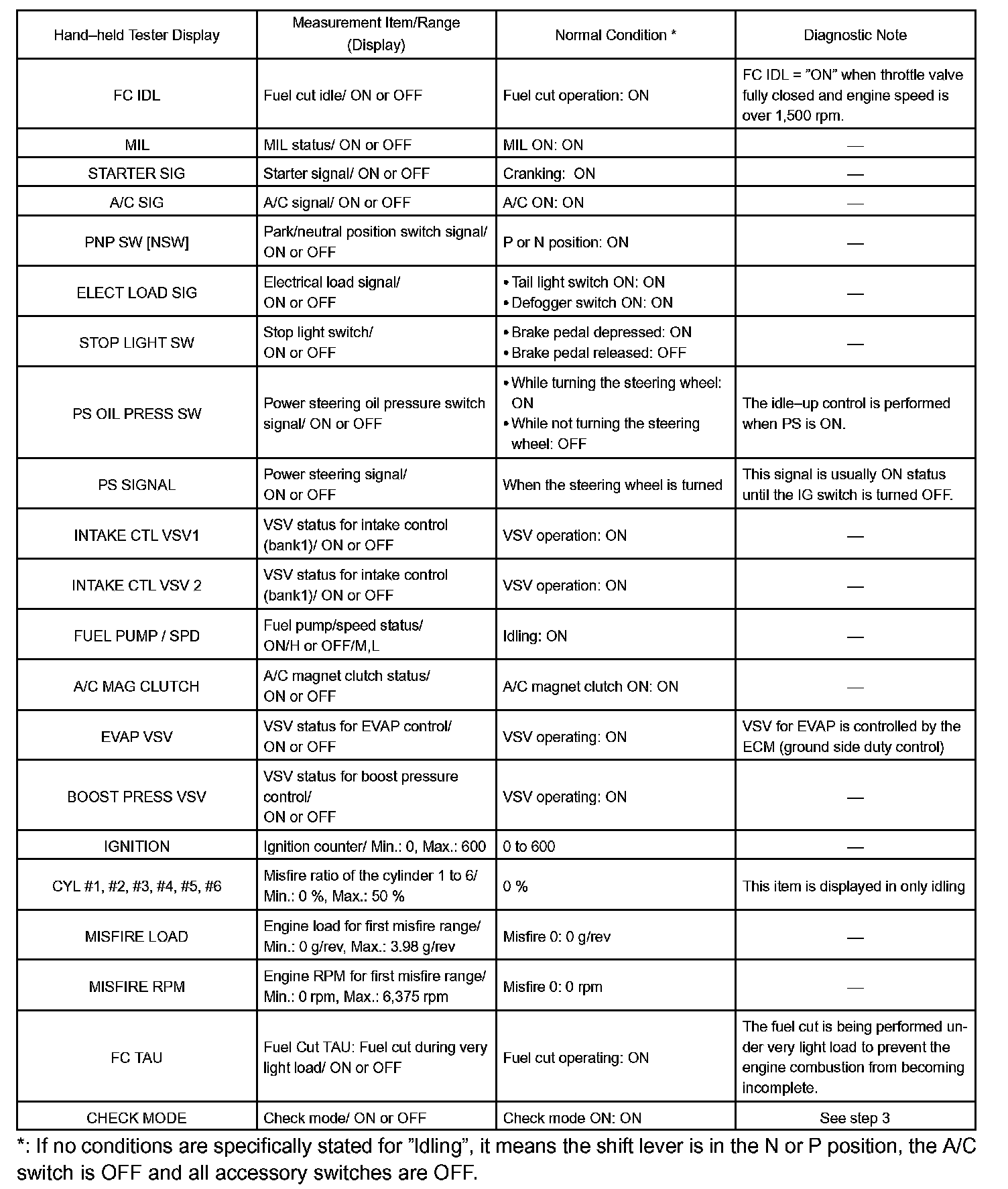 DATA LISTHINT: Using the DATA LIST displayed by the hand-held tester or the OBD II scan tool, you can read the value of the switches, sensors, actuators and so on without parts removal. Reading the DATA LIST as a first step of troubleshooting is one method to shorten diagnostic time.
