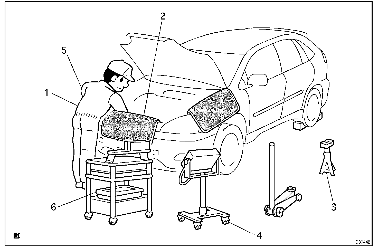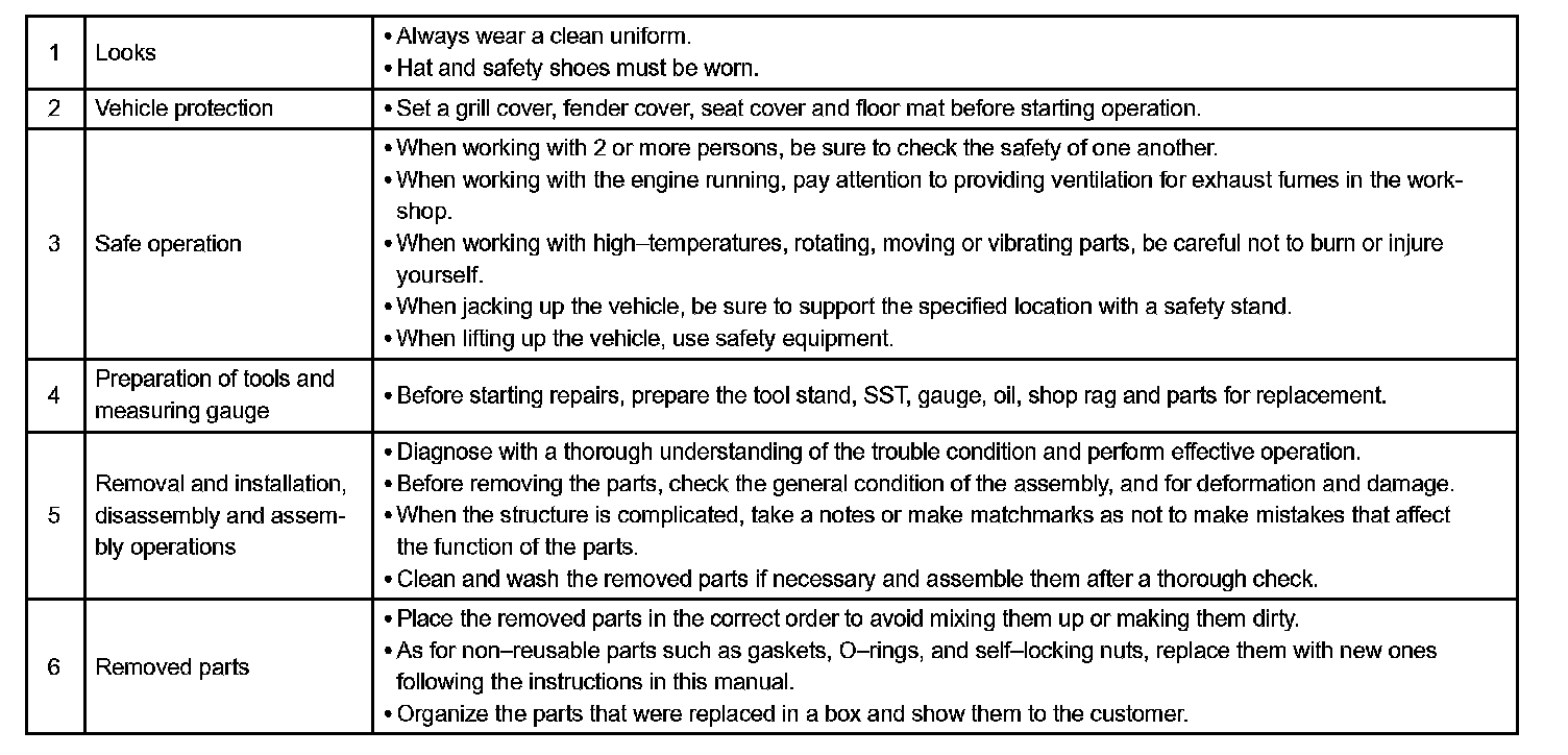1. Care must be taken when jacking up and supporting the vehicle. Be sure to lift and support the vehicle at the proper locations.