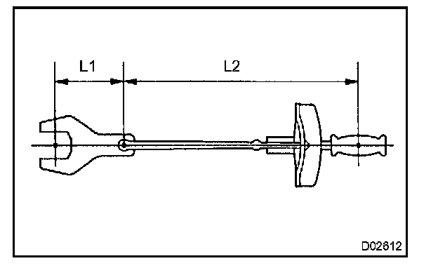 2. In case of using SST or extension tool, calculate the reading of the torque wrench by the following formula.