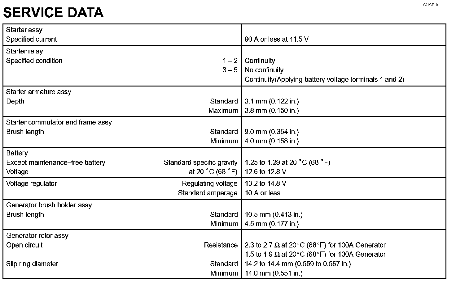Starting & Charging - Service Data: