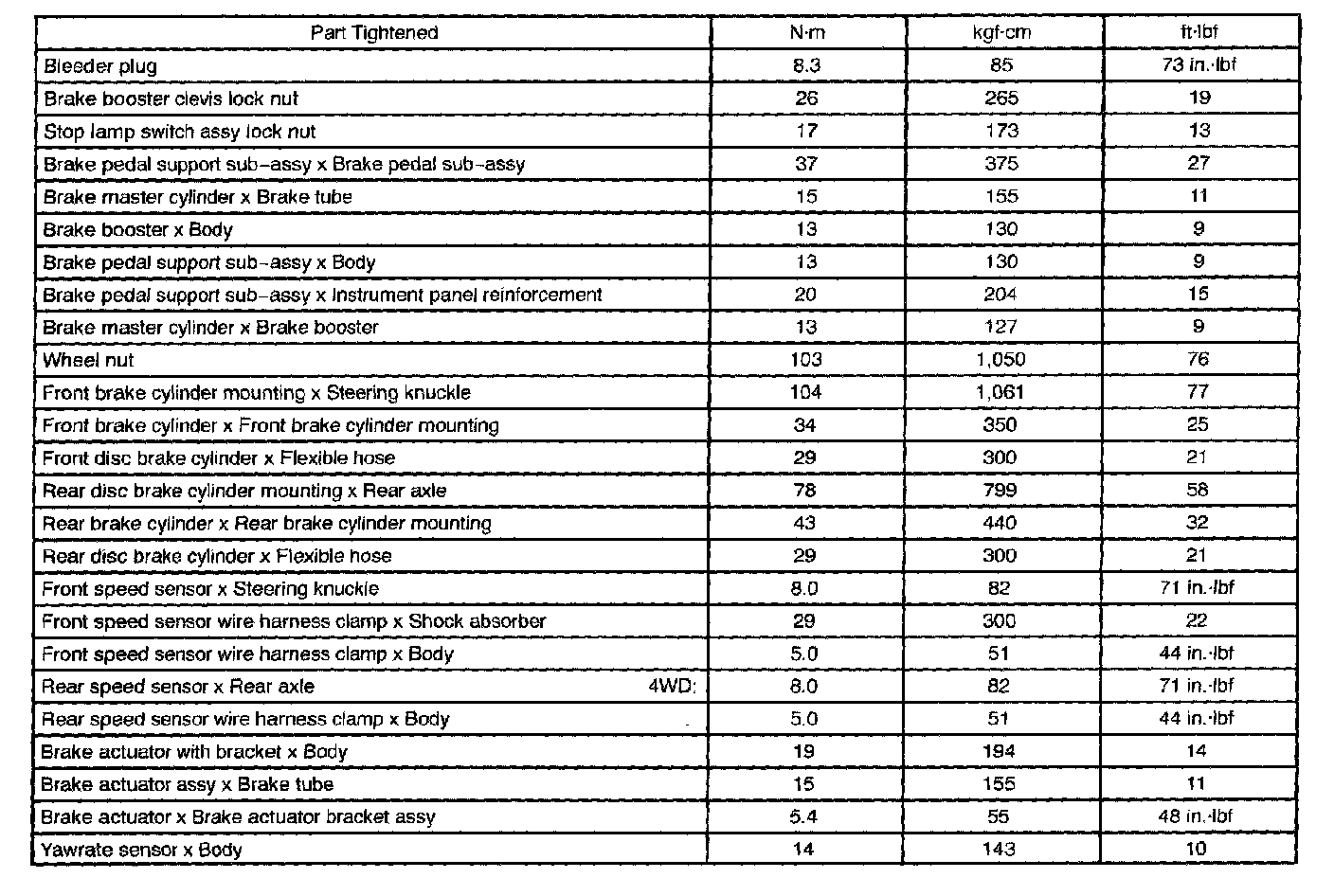Torque Specifications