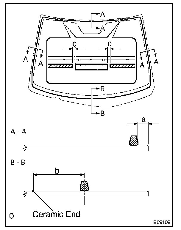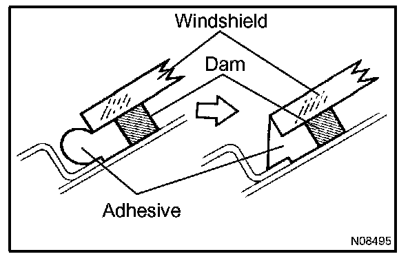 NOTE: Leave as much adhesive on the vehicle body as possible when removing the glass.