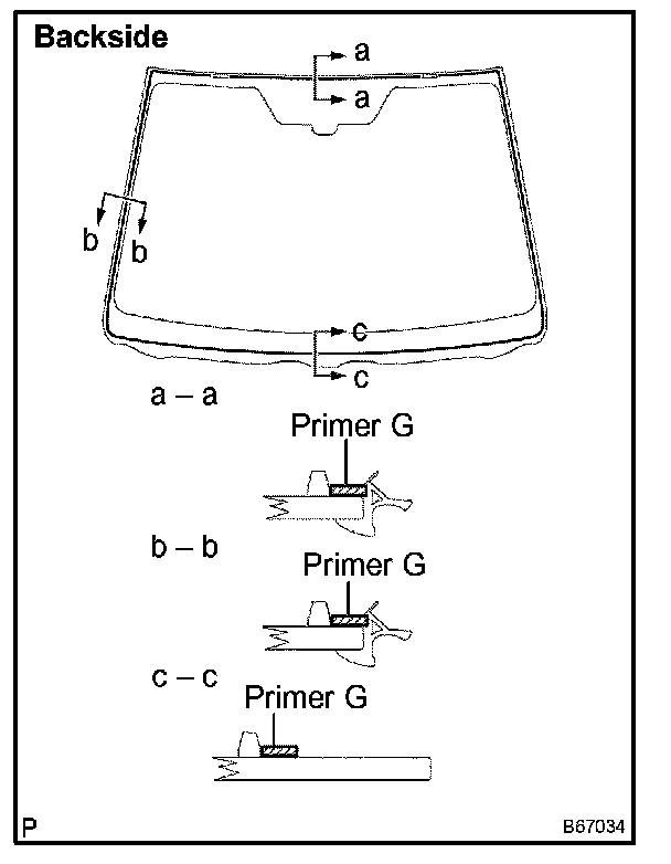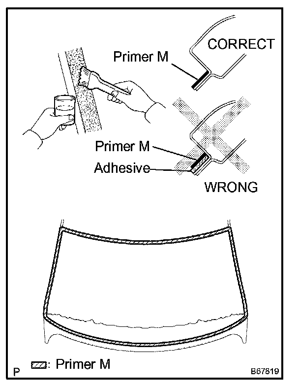 a. Using a brush or sponge, coat the edge of the glass and the contact surface with Primer G.