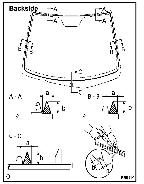 a. Install new windshield glass retainer to the glass, as shown in the illustration.