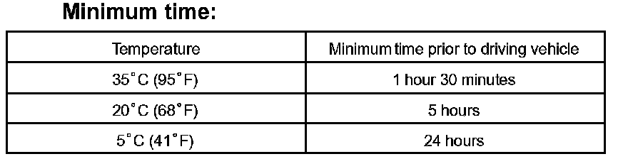 NOTE: Take care not to drive the vehicle for the time described in the table.