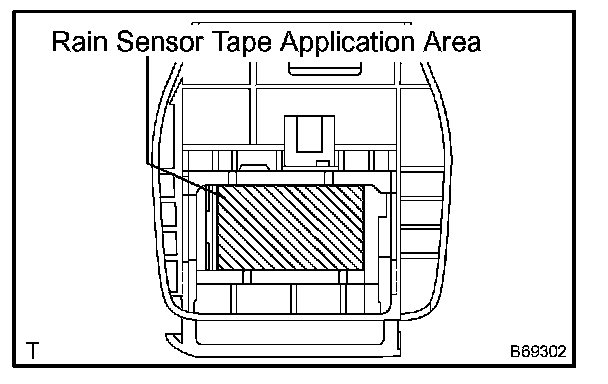 Check that no rain sensor tape remains on the windshield after removing the rain sensor. If tape remains, remove the tape.