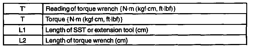 2. In case of using SST or extension tool, calculate the reading of the torque wrench by the following formula.