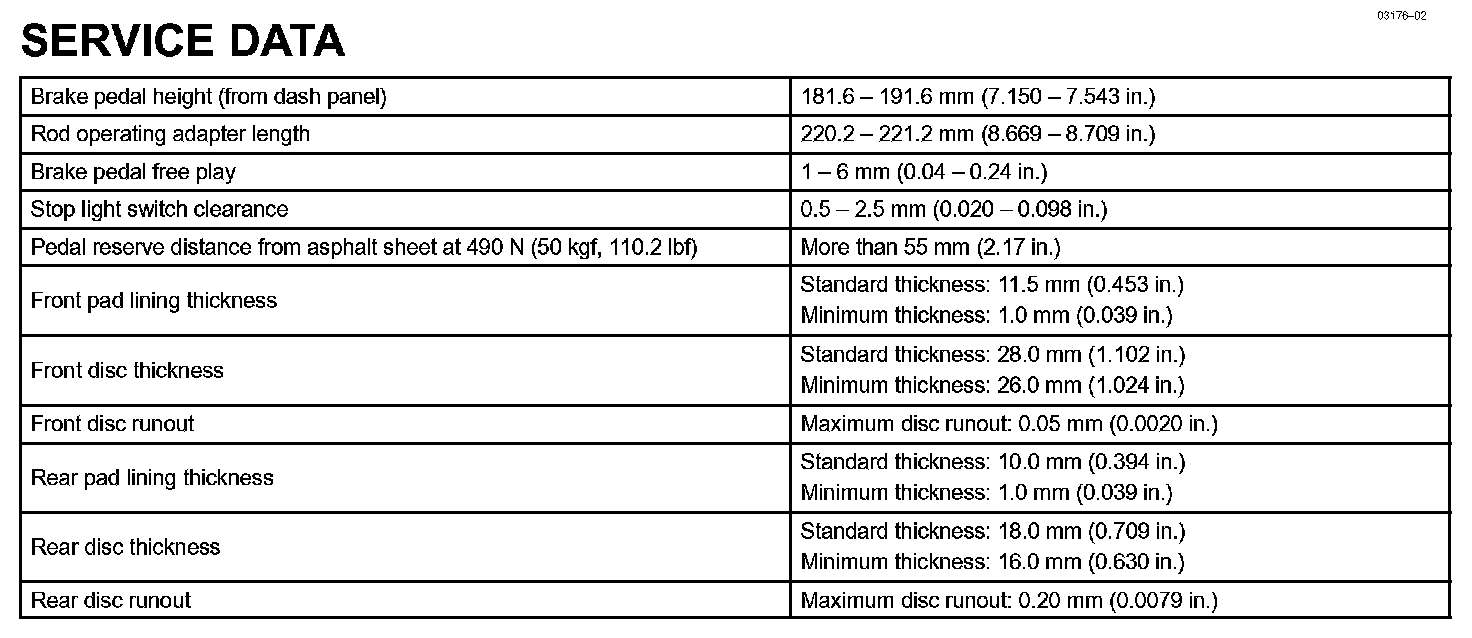 Brake - Service Data: