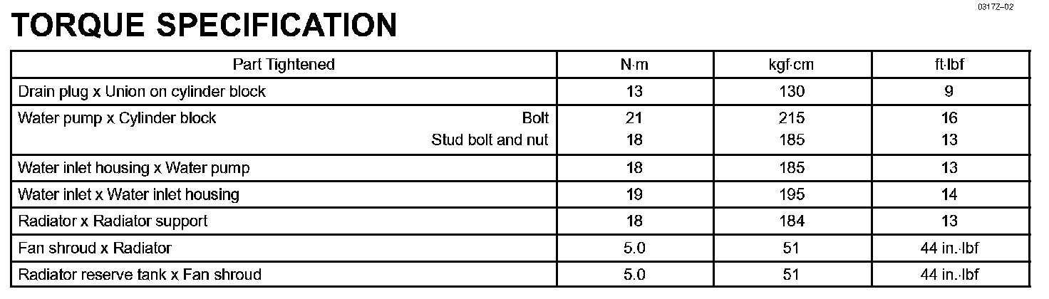 Cooling - Torque Specification: