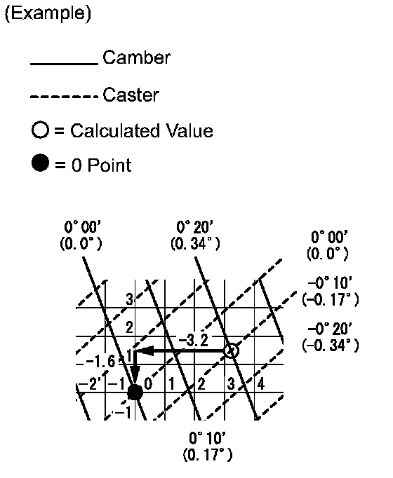 HINT: Try to adjust the camber and caster to the center of the specified value.