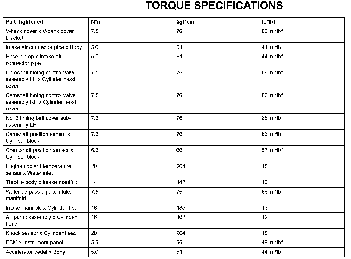 Engine Control System-Torque Specifications: