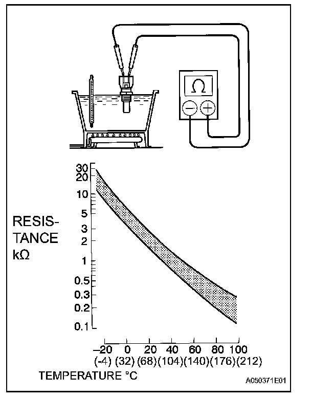 NOTE: In case of checking the water temperature sensor in the water, be careful not to allow water to go into the terminals, and after checking, dry the sensor.