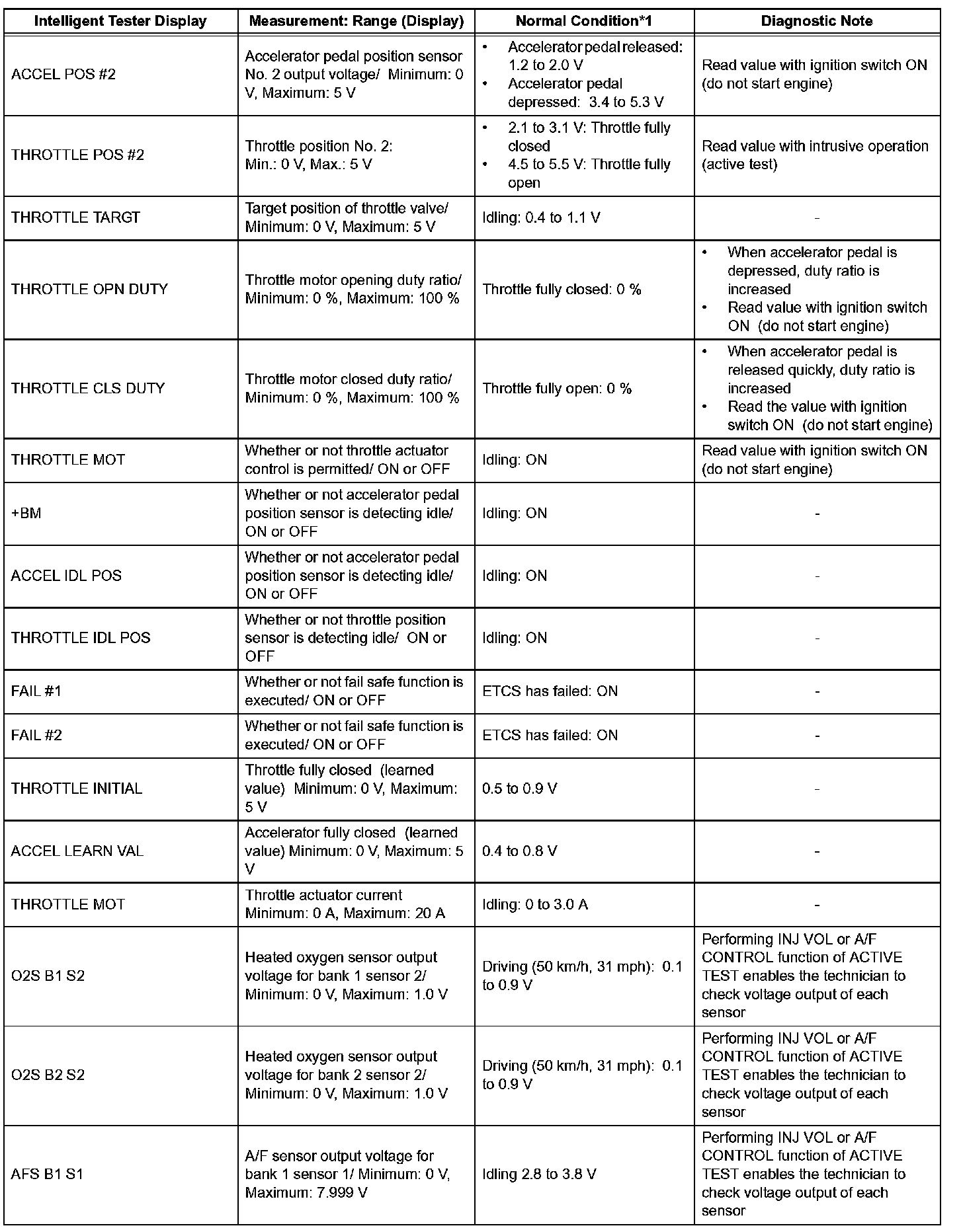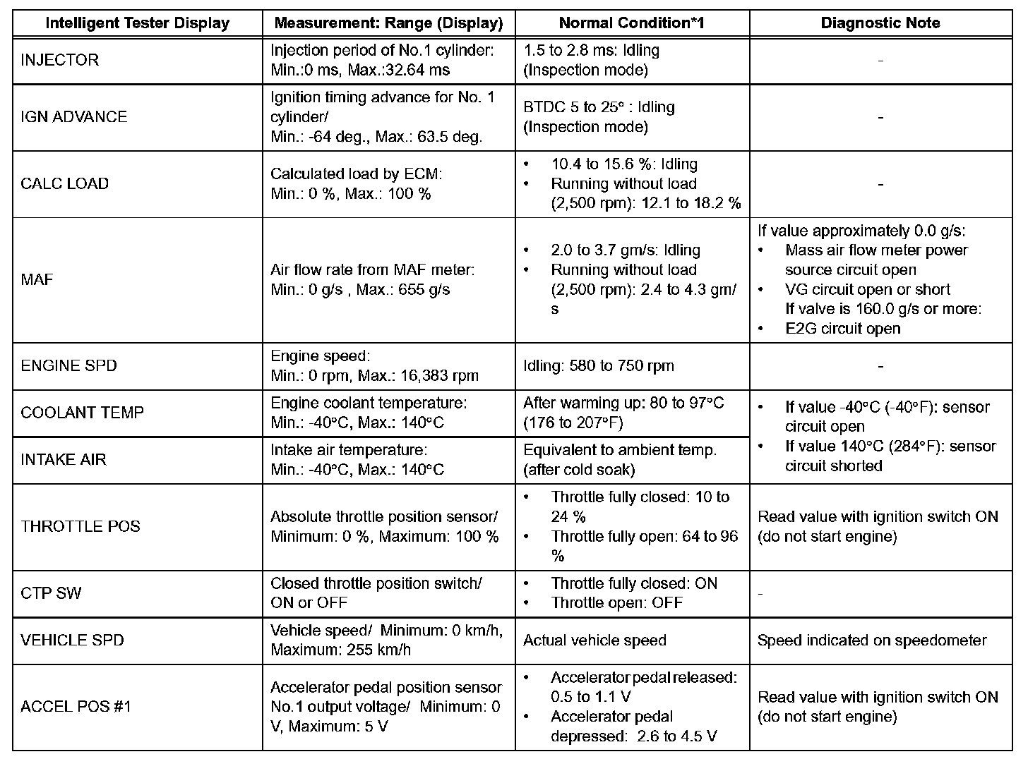 *1: If no idling conditions are specified, the transmission gear selector lever should be in the N or P position, and the A/C switch and all accessory switches should be OFF.