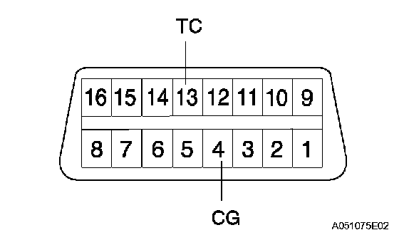 1 Using SST, connect terminals 13 (TC) and 4 (CG) of DLC3.