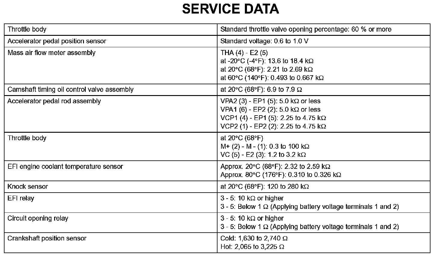 Engine Control System-Service Data: